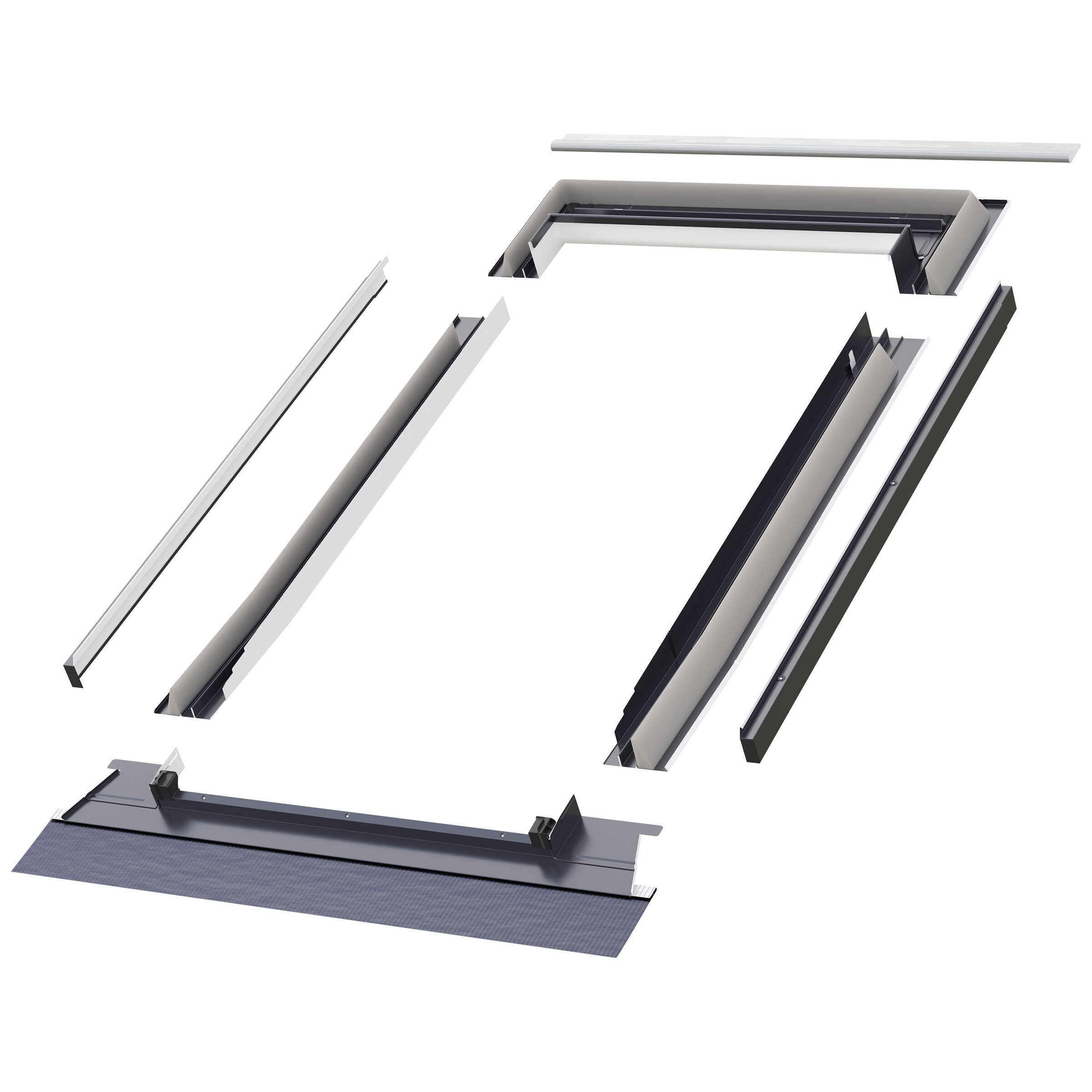 Kołnierz składa się z pięciu podstawowych elementów (dolny element, dwa boczne i górny element, PKDO). Dolny element kołnierza zakończony elastycznym fartuchem, posiada podklejoną od spodu masę plastyczną pozwalającą na przyklejenie kołnierza do pokrycia dachowego, przez co zapewniona jest szczelność połączenia. Wyposażony jest ponadto w rynienkę odwadniająca mającą na celu odprowadzenie skroplin pary wodnej z folii wstępnego krycia poza okno oraz boczne kliny uszczelniające zapewniające ochronę przed nawiewaniem pyłu, liści i śniegu.