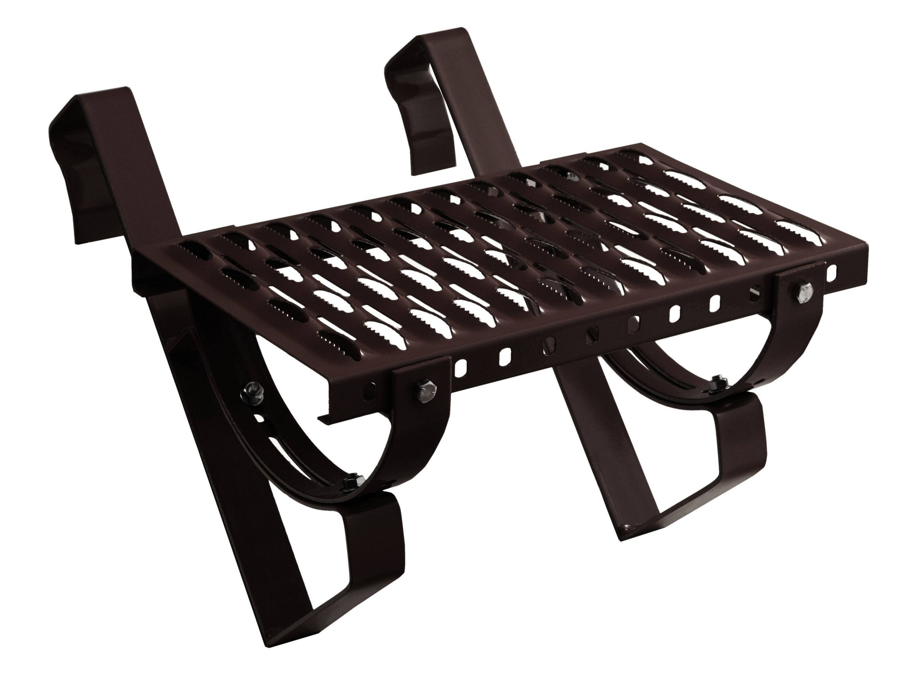 Materiał: Blacha stalowa spełniająca wymagania wytrzymałościowe zabezpieczona powłoką cynkową oraz pokryta farbą proszkową. - Kołyska ławy kominiarskiej (mocownik) - 2 sztuki dla zestawów o długości do 120 cm, natomiast od 150 cm załączamy 3 sztukę.